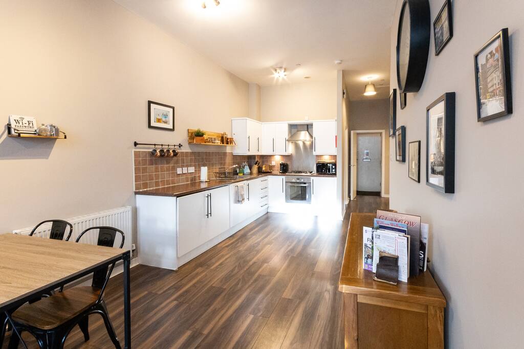 The apartment includes private parking, and is easily accessible to all major Glasgow motorways (m8, m74 and m77). West street subway station is a 3 minute walk away and will quickly link you to the City Centre, the classy West End and The East End hosting the Emirates Arena and Celtic Park. There is also local buses that run almost 24/7 connecting to Glasgow and surrounding areas.