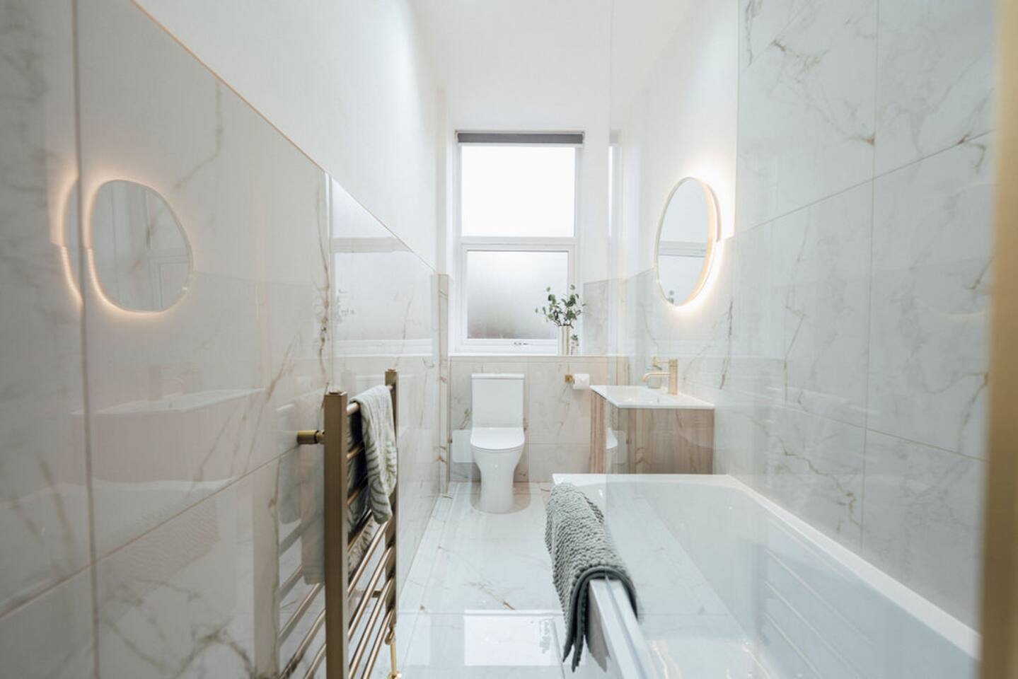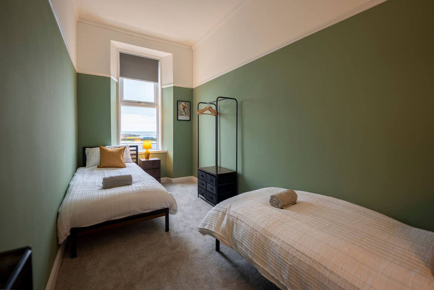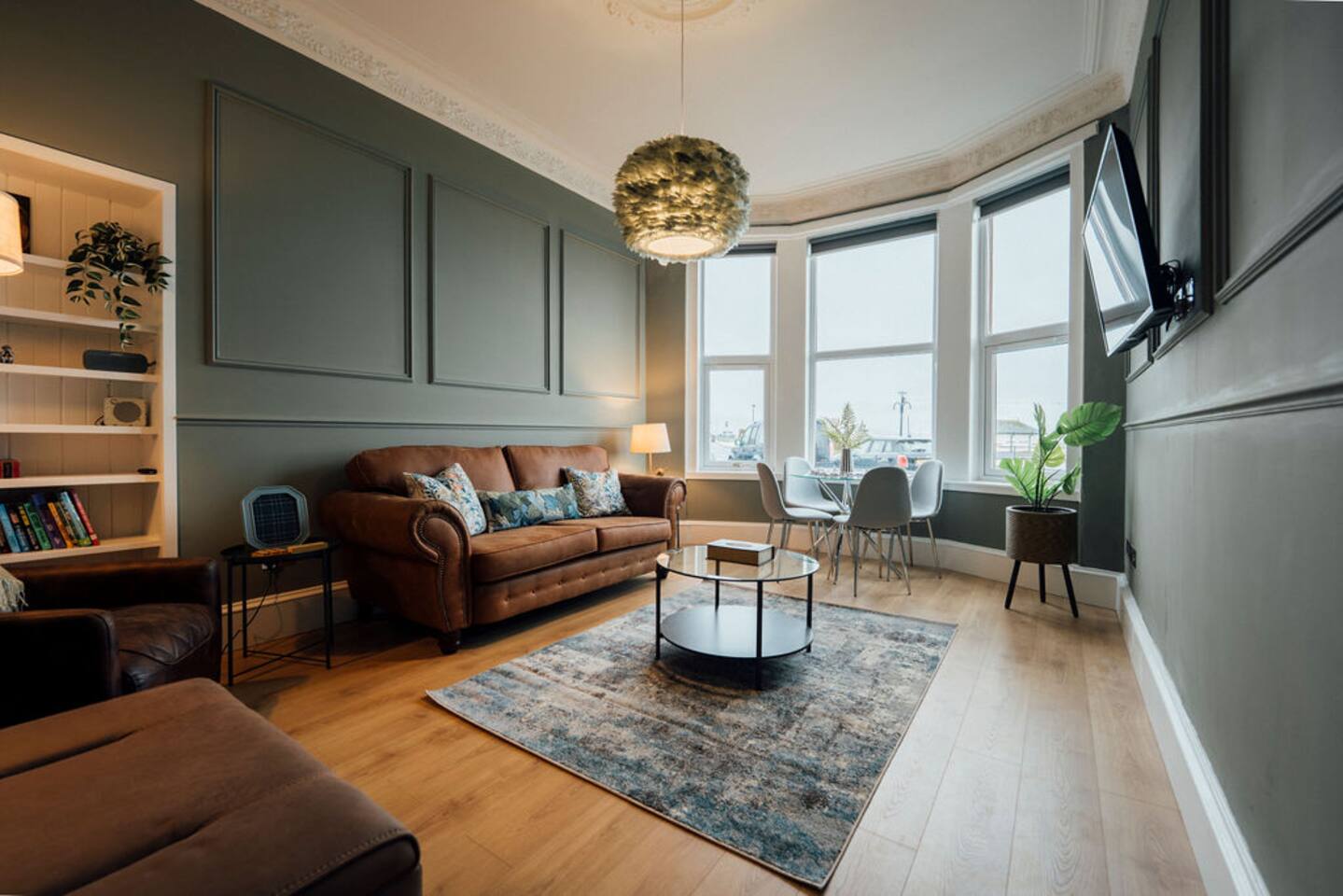 This fully refurbished apartment has been thoughtfully designed with comfort and style in mind. ✨ Elegant bay window lounge overlooking the sea ✨ High ceilings and original decorative plasterwork ✨ Luxury marble-style bathroom with rainfall shower ✨ Brass fixtures and designer finishes throughout ✨ Modern fully equipped kitchen ✨ Two comfortable bedrooms ✨ Ground floor access (2 steps) ✨ Superfast WiFi & Smart TV The spacious living room is flooded with natural light and offers beautiful sea views — ideal for morning coffee while watching the water, or cosy evenings in.